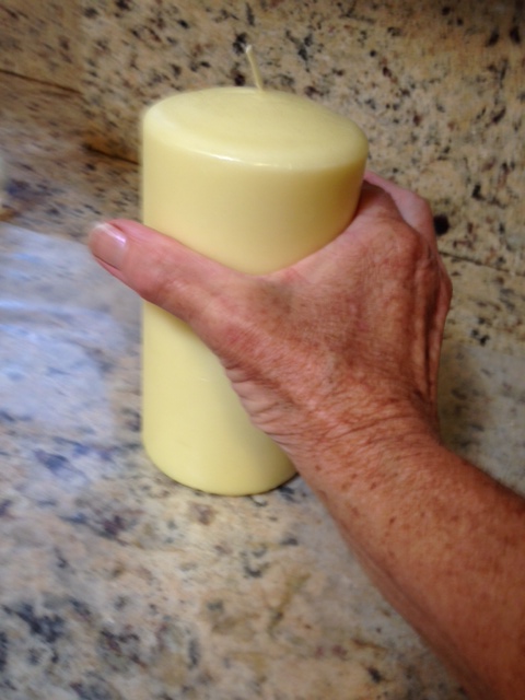 Then I add another line of lemon oil to the middle of the candle and spread it with my hand in a downward motion. I think, “Remove negativity!”