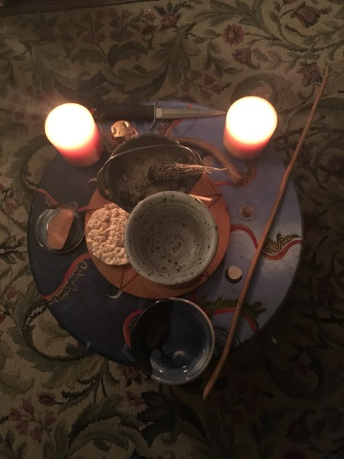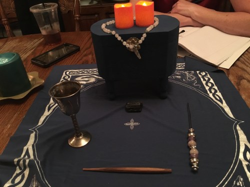 We discussed the difference between the two words, “altar” and “alter” and summed things up by saying that you come to the altar, a place to focus and gather magickal energies, to alter life circumstances, or bring about change.