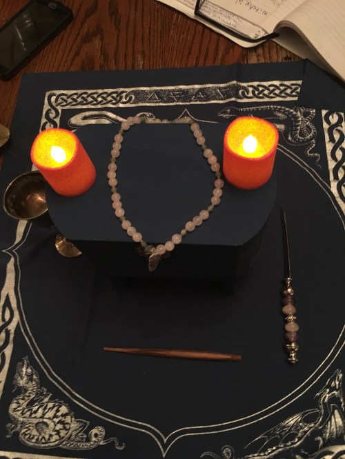 Here is the result of one of our apprentices practicing setting up an altar:
