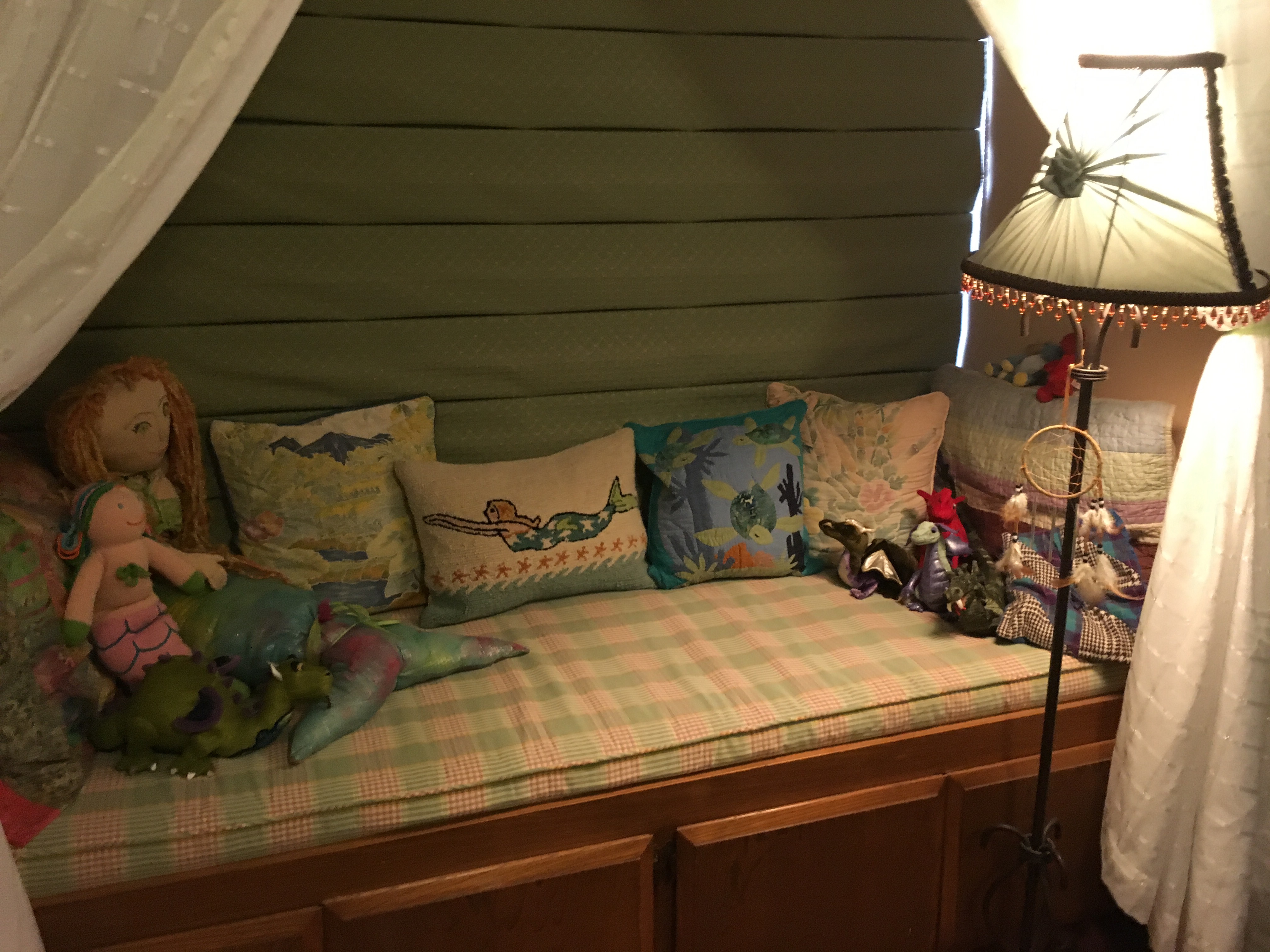 One of the best things about my witchycraft room is the window seat reading nook. I’m ashamed to say I have barely used it. This witch is too busy! But, I cleaned it up, added boho curtains and now it’s very inviting!