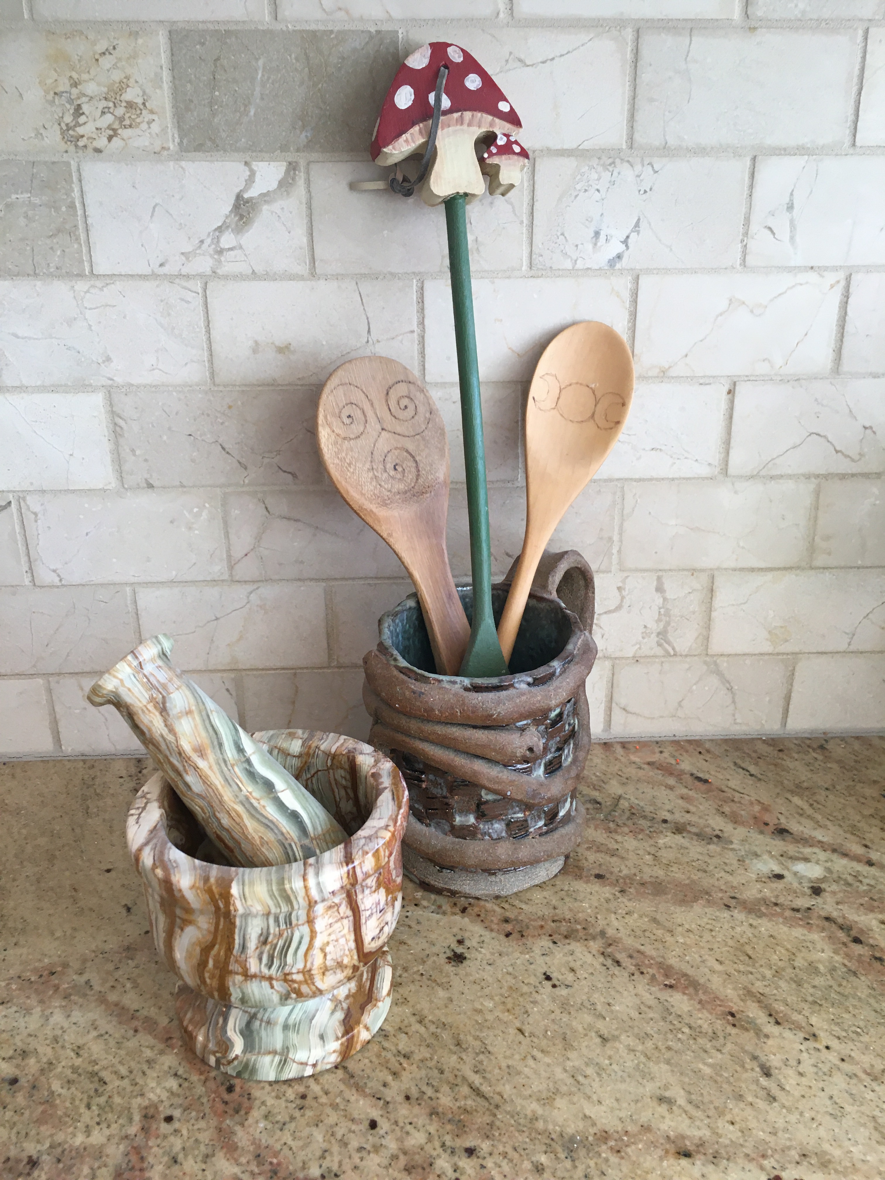 Lemons are great at cleansing an area of stuck and murky energy. Squeeze some lemon juice in your bucket with your mop water. Wipe your counters with lemon juice. Boil lemon peel in your kitchen cauldron to cleanse the air and breath in the citrusy scent to cleanse your own energy. Throw the used lemons in your garbage disposal and grind them up to cleanse the drain as well.
