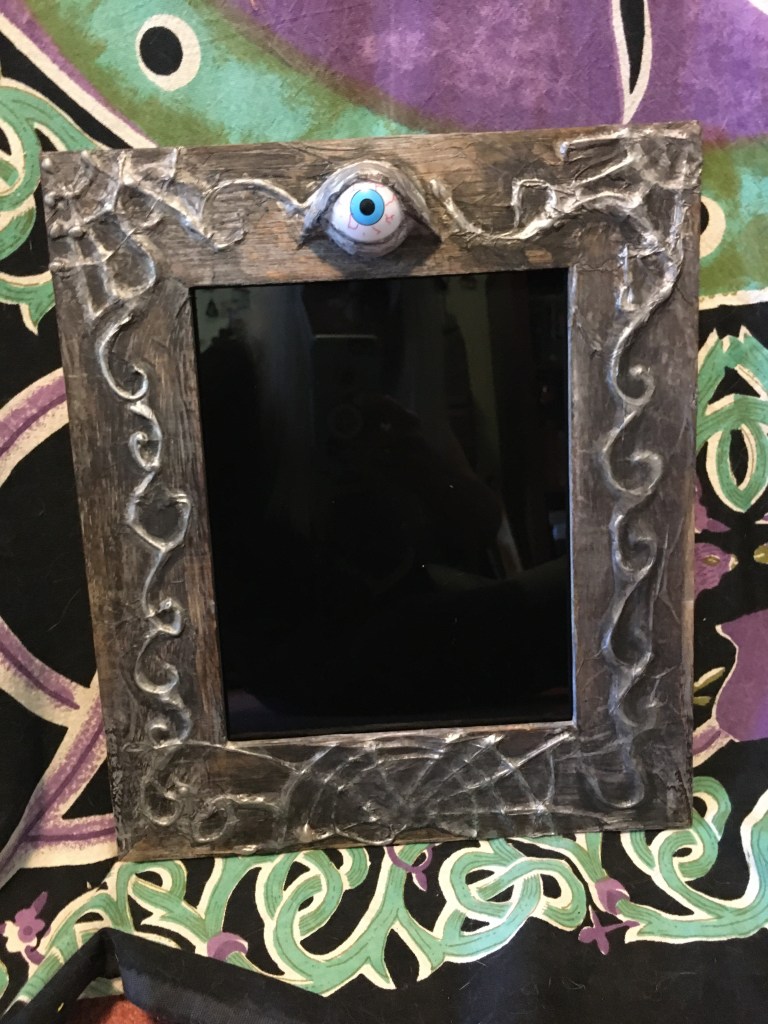 I have been wanting to create a black mirror for scrying ever since I experienced the magickal depths of the black mirror created by my friend, Firebird. I finally gathered the supplies I needed the other day and crafted my mirror! I can’t wait to use it for divination at the upcoming dark moon.