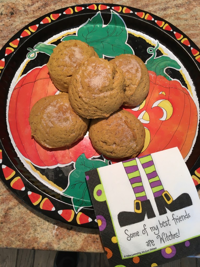 I wanted to sweeten things up for this special Witches’ New Year, so I brewed up some Pumpkin Full Moon Cakes to serve for the ritual cakes and ale. This is a one bowl recipe that is easy to mix up. I made them vegan because I’m that kind of kitchen witch. You can make them gluten free by substituting your favorite gluten free baking mix (it should say on the package if you can substitute it one for one with all purpose flour).