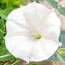 Angel’s Trumpet: Another vine, this annual spreads like crazy. Its trumpet-shaped, white flowers have a bell-like appearance when open.