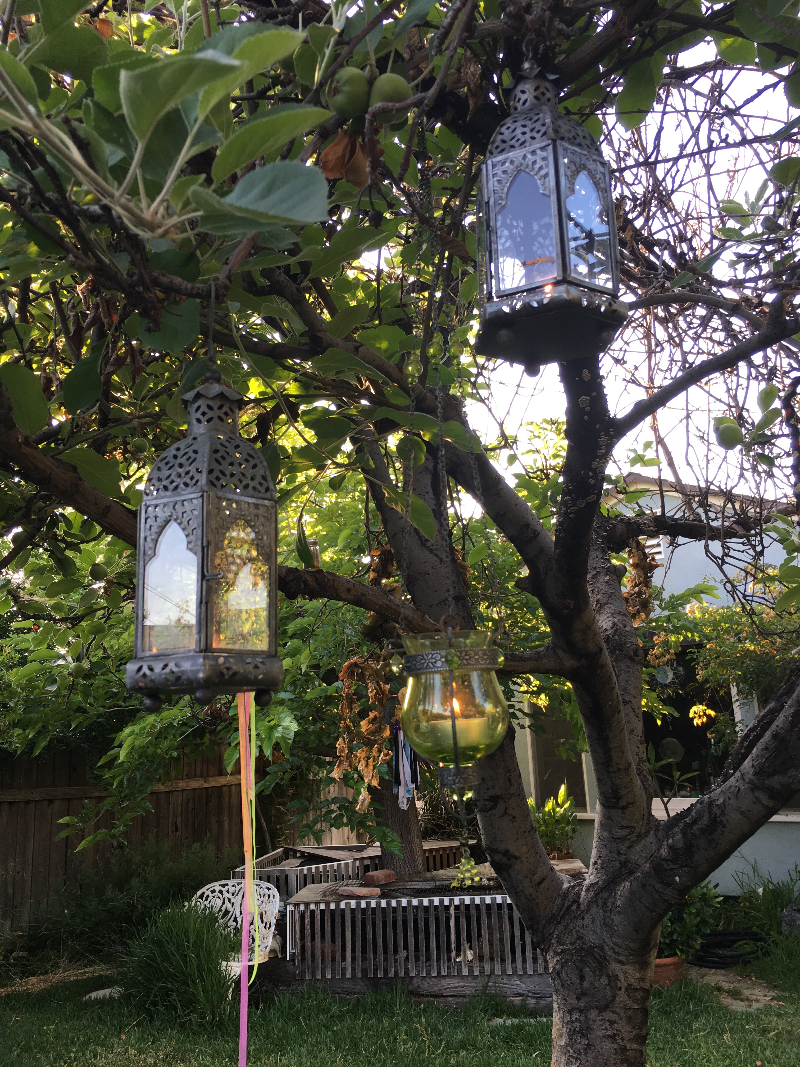 On returning, our circle energy felt very mystical. The solar lights had lit themselves while we were “away” and flickered and changed colors.