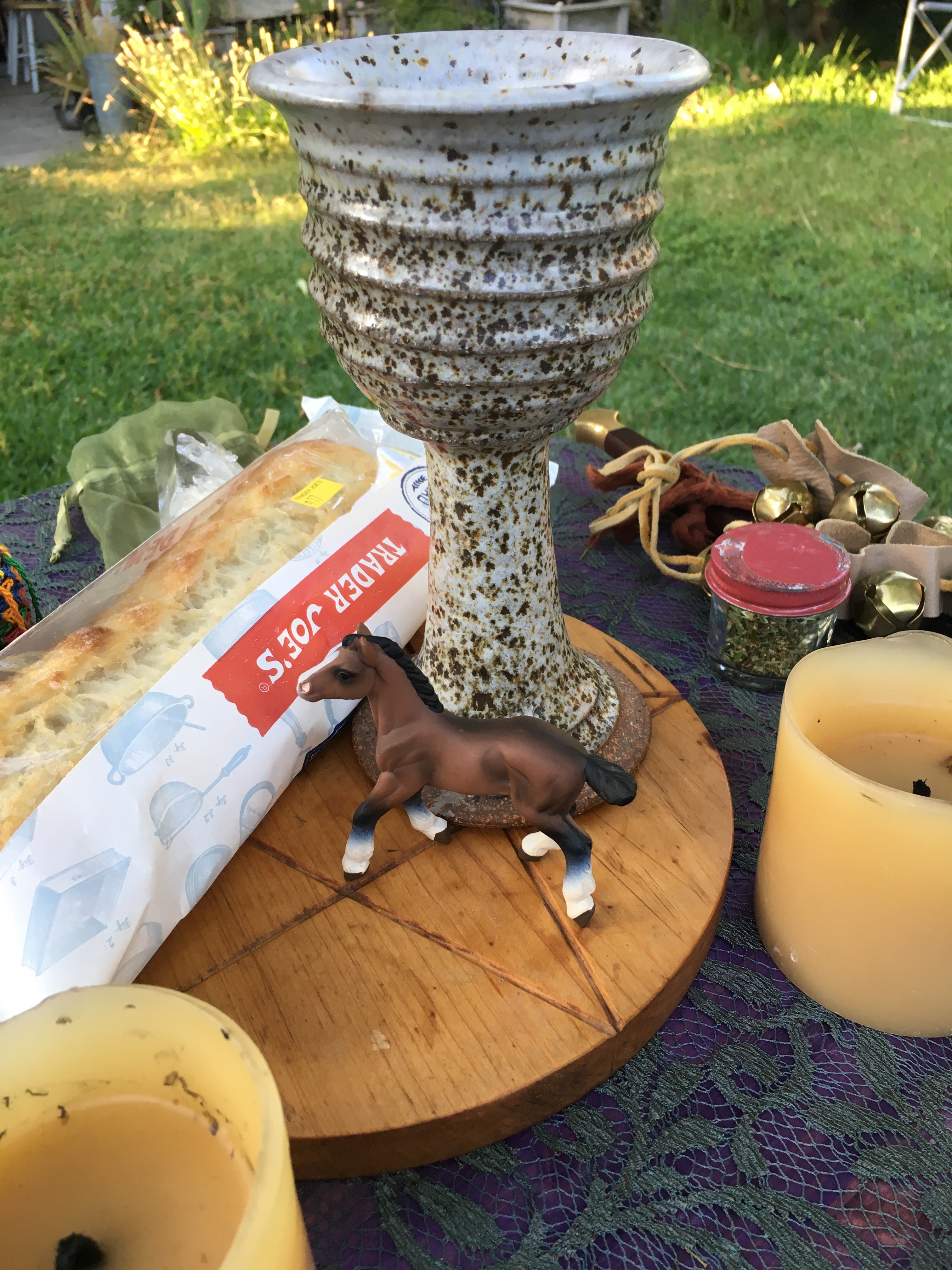 Several of our covens have adapted this time to holding a market where we barter and trade personal items amongst our group members. This is always a lot of fun, and over the years some items get passed back and forth between coveners as an inside joke. We always look forward to this traders’ market each year!